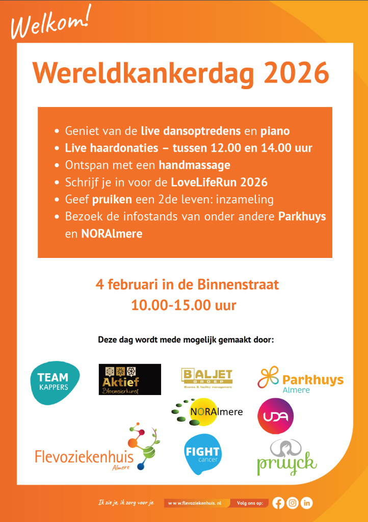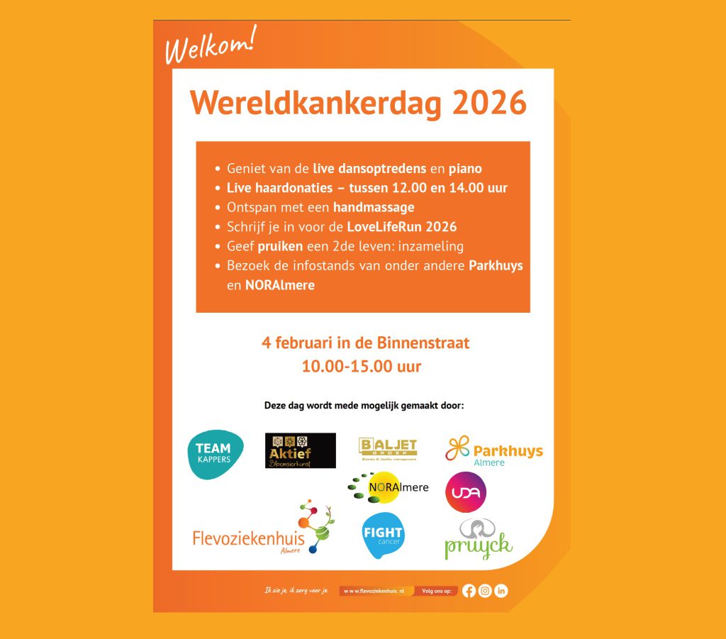 Ter gelegenheid hiervan organiseren diverse instellingen een informatiemarkt in de centrale hal van het Flevoziekenhuis. Ook het Parkhuys is hier natuurlijk bij aanwezig!