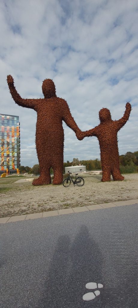 • De reuzen om ons heen Op de foto zie je mijn eigen fiets, klein en bescheiden, naast enorme, imposante figuren. Hoe nietig kun je je hierbij voelen? En dat is precies hoe het leven vaak voelt na de diagnose kanker. De wereld van ziekenhuizen, onderzoeken en onzekerheid kunnen aanvoelen als die reusachtige figuren: overweldigend, groot en soms een beetje beangstigend. Je voelt je als mens plotseling heel klein.