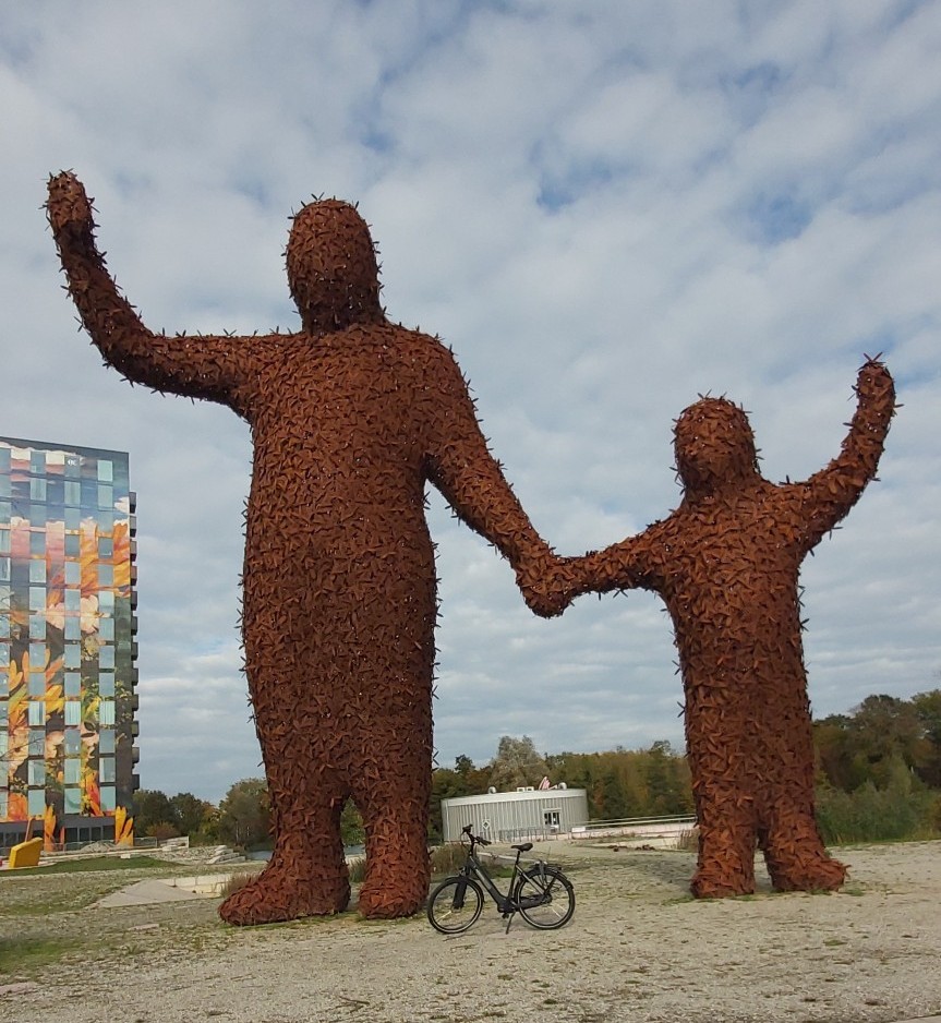 • De reuzen om ons heen Op de foto zie je mijn eigen fiets, klein en bescheiden, naast enorme, imposante figuren. Hoe nietig kun je je hierbij voelen? En dat is precies hoe het leven vaak voelt na de diagnose kanker. De wereld van ziekenhuizen, onderzoeken en onzekerheid kunnen aanvoelen als die reusachtige figuren: overweldigend, groot en soms een beetje beangstigend. Je voelt je als mens plotseling heel klein.